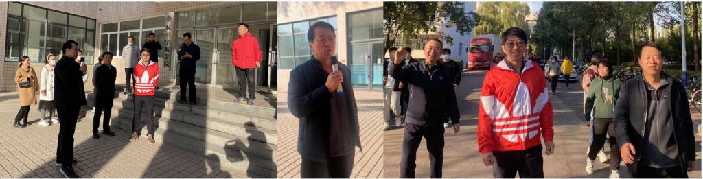 活动伊始,院党委书记罗建国向新学院成立以来的首次工会活动的开展进行了热情洋溢的致辞,并就学院今后的建设和发展进行了展望,希望全院教职工在活动中加强团结融合,凝心聚力促进学院发展。院党委副书记史瑞根介绍了活动规则,要求教职工在沿校园围墙健步行进的同时,发现和制止翻越围墙围栏行为,为筑牢校园疫情防控的安全防线做出积极贡献。