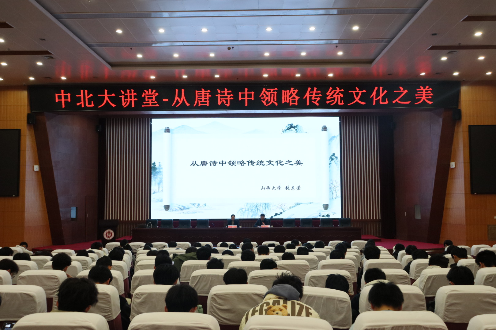 、艺术学院联合主办的中北大讲堂系列讲座,在学校图书馆五层报告厅圆满落幕。本次讲座特邀山西大学文学院张立荣教授担任主讲人,以 “从唐诗中领略传统文化之美” 为主题,带领现场近百名师生穿越千年时光,沉浸式品味唐诗的深邃意蕴,深切感悟中华优秀传统文化的永恒魅力。
