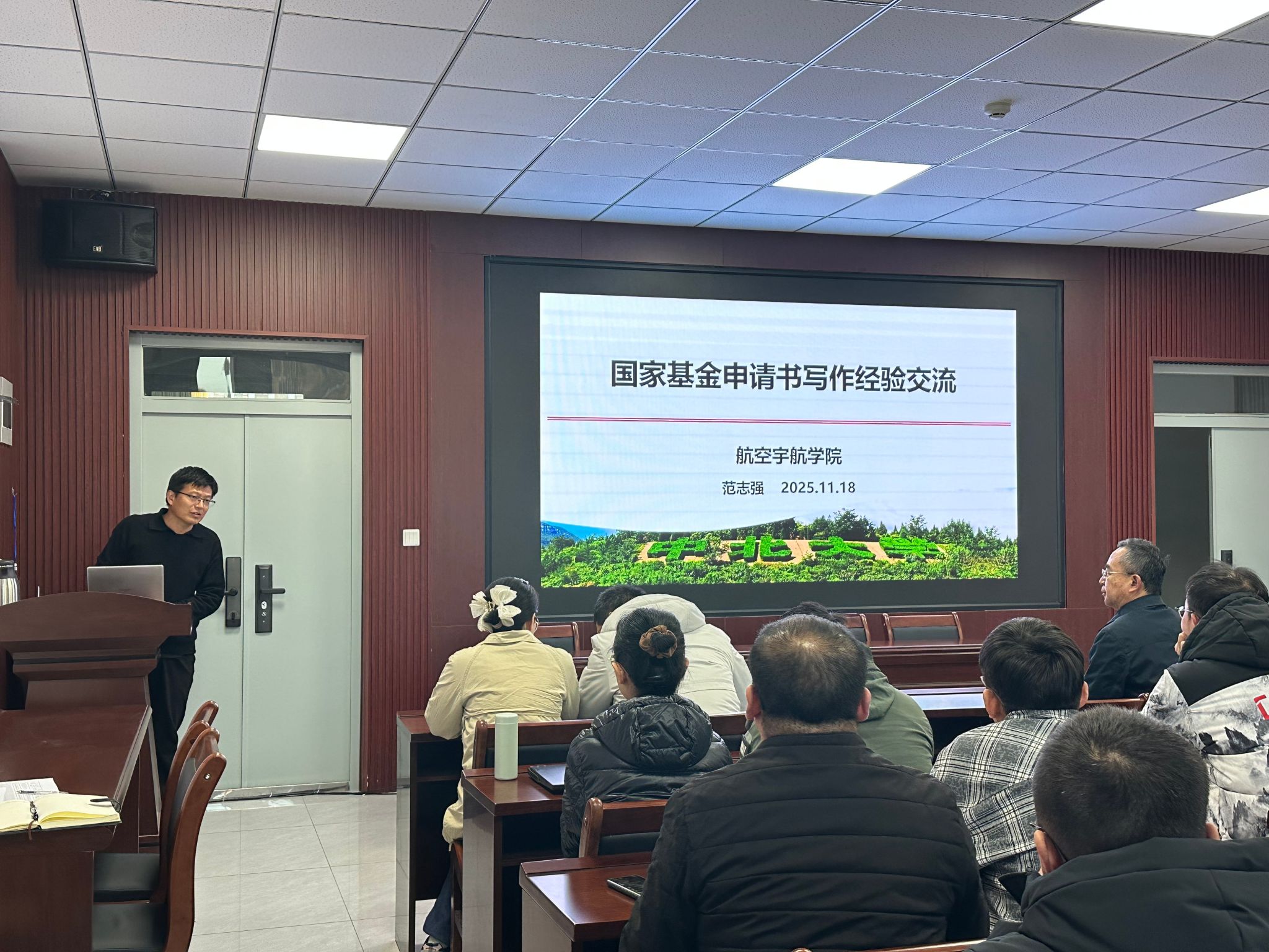 会议最后,徐鹏以屈原“路漫漫其修远兮,吾将上下而求索”的名句寄语全体青年教师,鼓励大家秉持科研初心,精益求精打磨申报材料,勇于攻克学术难关。他明确表态,学院将全力做好组织保障工作,通过专家辅导、团队协作、资源统筹等多项举措,为青年教师申报之路“铺路架桥”,全方位支持大家提升申报质量与命中率。希望学院青年教师以此次会议为契机,尽早谋划、精心准备,力争在2026年度国基金申报中取得新突破,为学院科研发展与学校“双一流”建设贡献青春力量。