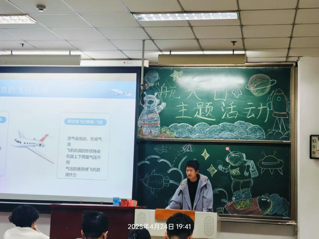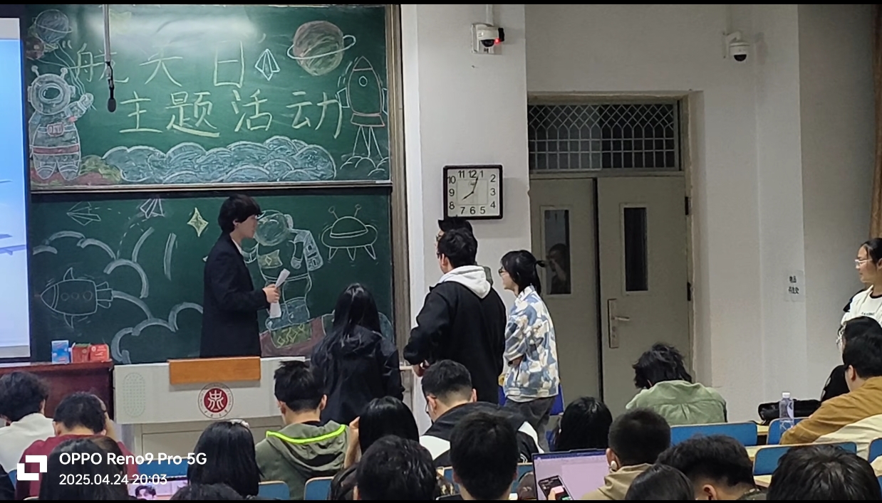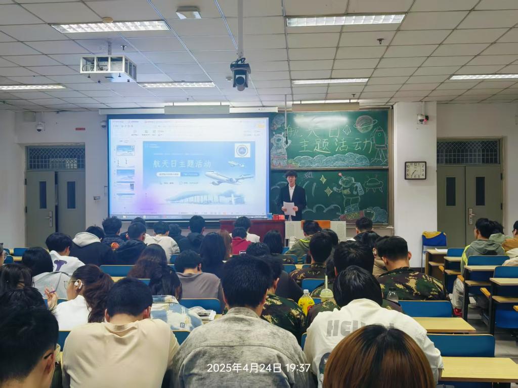 科学技术协会精心筹备的 “4・24 航天日” 主题科普晚会,在11112H教室璀璨启幕。此次活动以晚会为载体,致力于普及航天知识,激发同学们对航天事业的无限向往与浓厚兴趣,吸引了近百名同学齐聚一堂。